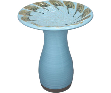 20″H Feather Birdbath Blue and Brown