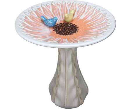 Be the first to review “22″ H Sunflower Birdbath Peach with Birds”