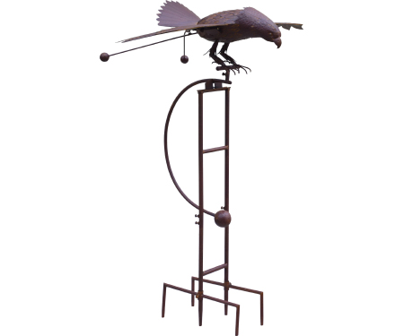 This kinetic owl will be the centerpiece of any landscape. 76″ high, with a 56″ wing span, this jumbo eagle rocks in the wind, and adds a touch of whimsy to every garden. Attractive rust finish.